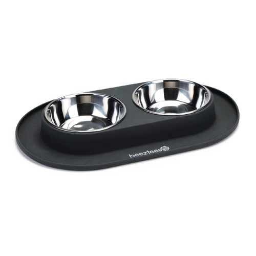 Der Beeztees Doppel-Futternapf ist ein praktisches Dinner-Set für Hunde. Das ovale Set mit Silikonrand enthält zwei silberne Futternäpfe, die aus der Silikonform genommen werden können. Dank dem Spritzschutz werden eventuelle Klecker-Reste und Spritzer direkt aufgefangen.