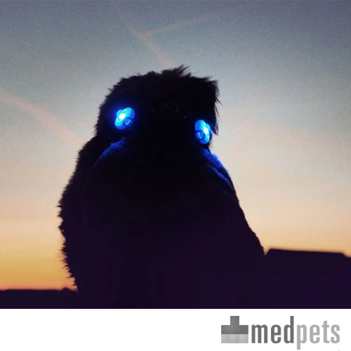 In der Dämmerung und nach Einbruch der Nacht ist ein Licht an der Leine oder am Halsband Ihres Hundes eine bequeme und sichere Möglichkeit, Ihren Hund besser sichtbar zu machen. Luumi von Curli ist eine leichte LED-Lampe, die ein bläuliches Licht ausstrahlt, um optimale Sicherheit zu gewährleisten. Eine Packung enthält zwei Luumi LED-Lämpchen, damit Sie je eine Lampe auf jeder Seite des Hundes befestigen können. Die LED-Lampen sitzen in einer Silikonschutzhülle und können mithilfe des mitgelieferten Silikonbandes ganz einfach am Halsband, dem Geschirr oder der Leine Ihres Hundes befestigt werden. Sie können die Lampen entweder auf Blinkmodus stellen (etwa 120 Stunden Betrieb möglich) oder auch mit konstantem Licht verwenden (etwa 50 Stunden). Die beiden LED-Lampen werden inklusive Batterien geliefert, die bei Bedarf ganz einfach ausgetauscht werden können.