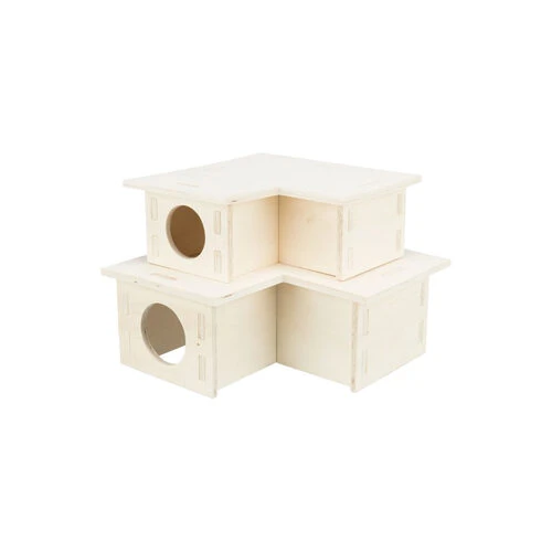 Dieses mehrstöckiges Haus aus unbehandeltem Holz von Trixie ist ein schönes und tierfreundliches Zuhause für Ihren Hamster oder Ihre Maus.